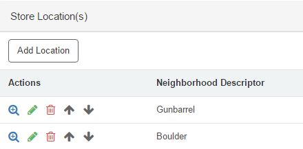 - The Neighborhood Descriptor will be displayed in the Header, and detailed information about each store location will be displayed on the Contact Us page.