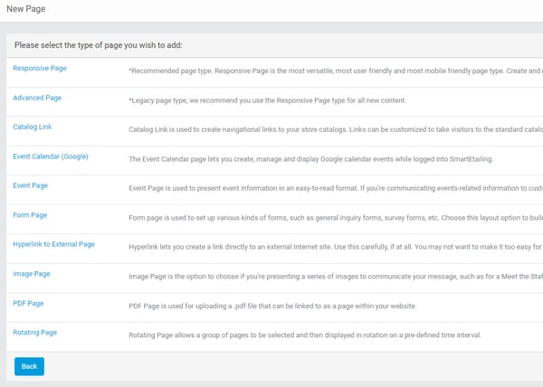 - All new page types can be found in Admin by navigating to Website > Page editor, and clicking "Add Page".