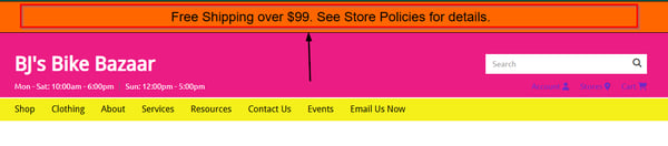 - A banner can be used to promote a new sale, disseminate a discount code, alert customers of hours of operations changes, etc.