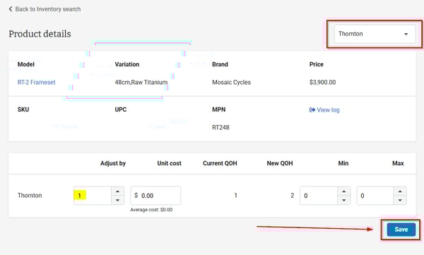 - Basic information, as well as the ability to update QOH by location, can be viewed by clicking into a SKU.