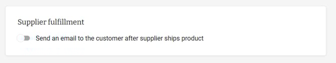 - If you are participating in Supplier Fulfillment and would like your customer to receive an email shipping notification when their product(s) ships from the supplier toggle this setting on.