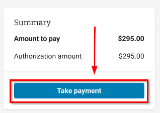 - If manual capture is enabled, click "Take payment" on the right side of the screen and then click "Capture authorization" in the payment drawer.