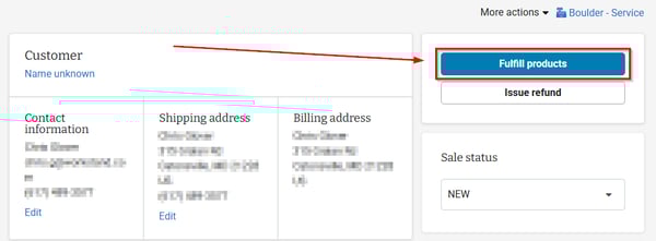 - Once you have the items that were ordered in hand, mark the products as Fulfilled within the sale details by clicking the "Fulfill products" button.