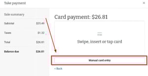 - Under the payment total, click "Manual card entry".