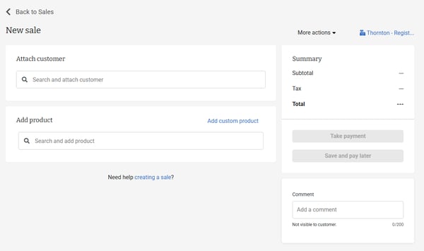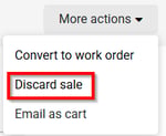 To discard a sale that you're drafting before taking payment, click "More actions".- Select Discard sale from the drop-down.