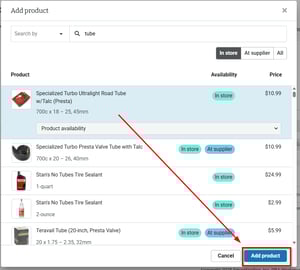 (Optional) For a more detailed look at product availability, click the down arrow in "Product availability down arrow to see exactly where the product is.- Select a product and click "Add product".