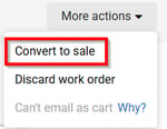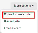 You may want to convert a sale to a work order if, for instance, you have already started a sale for some components and the customer then informs you that they need the parts installed.- To convert a sale to a work order, click the "More actions" drop-down menu on the top right of the screen.