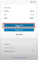 - A message stating "Terminal connected" will display at the bottom right of the sale screen.