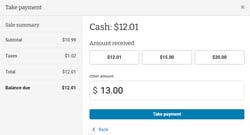 - The amount of change due will appear, along with the options to "Print receipt", "Email receipt" and "Start new sale".