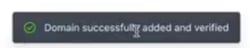 - You will receive a success message at the bottom of the screen indicating the domain has been added and verified.